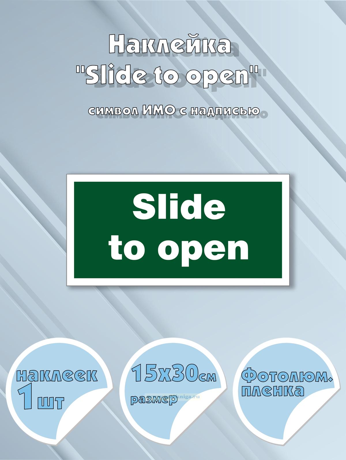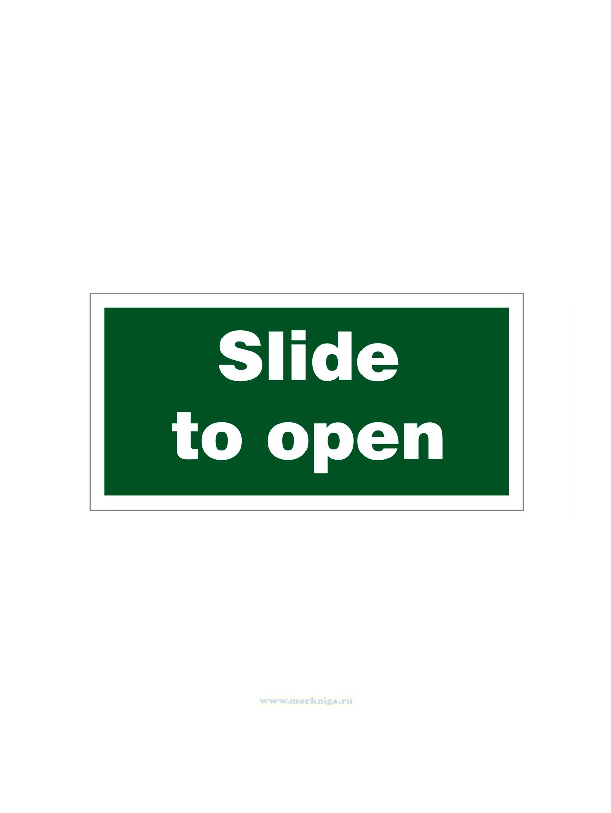Наклейка "Slide to open" указывает, что дверь, люк или окно необходимо перемещать в горизонтальном направлении (вправо или влево), а не открывать на себя или от себя, чтобы обеспечить быстрый доступ при эвакуации.