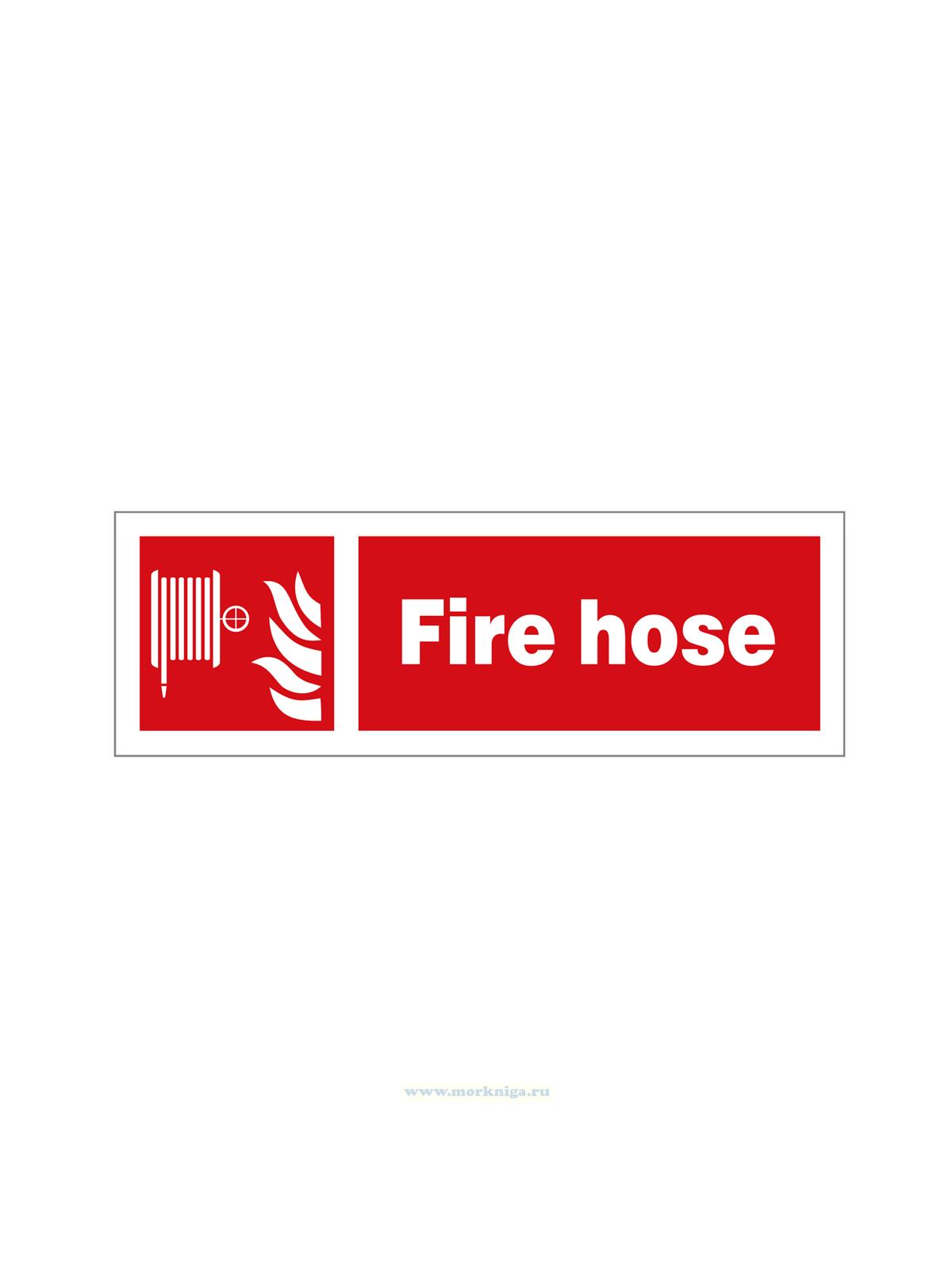 Наклейка "Fire hose" обозначает место хранения пожарного рукава для подачи воды при тушении огня. Она помогает оперативно найти оборудование для борьбы с пожаром и повысить эффективность пожаротушения.