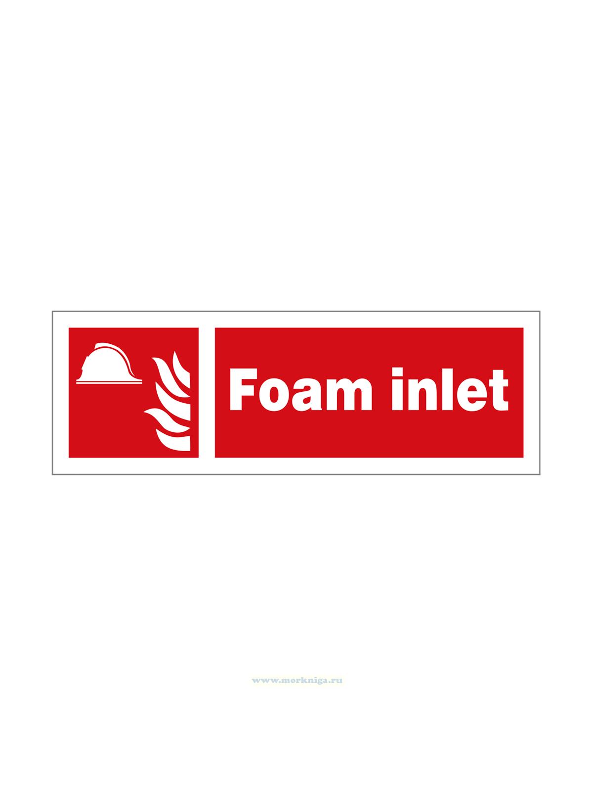 Наклейка "Foam inlet" указывает на точку подключения пены в систему пожаротушения, где огнетушащий пенный концентрат смешивается с водой для создания эффективного пенного состава, предназначенного для тушения горючих жидкостей.