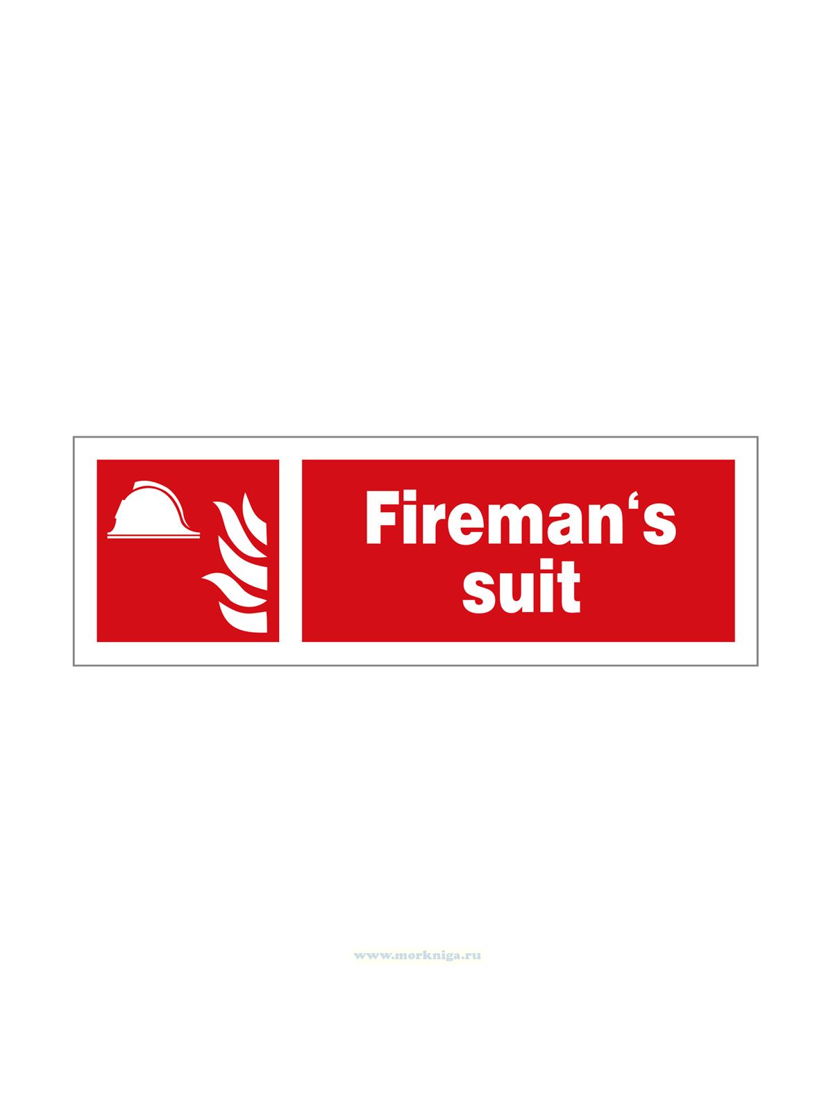 Наклейка "Fireman's suit" используется для обозначения места хранения пожарного костюма или экипировки. Она помогает быстро найти спецодежду пожарных в случае необходимости быстрого реагирования на пожар.