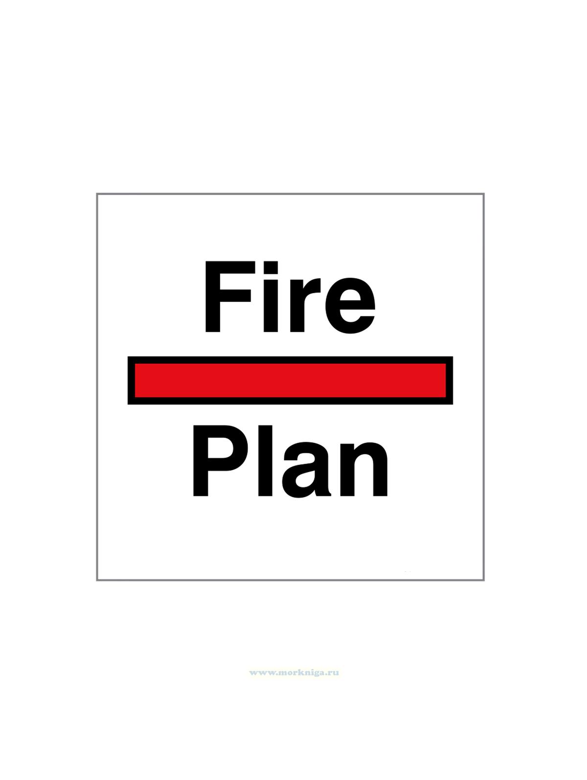 Наклейка "Fire plan" обозначает план пожарной безопасности здания, показывающий маршруты эвакуации и расположение пожарного оборудования. Она помогает людям быстро ориентироваться в случае пожара для безопасного выхода.