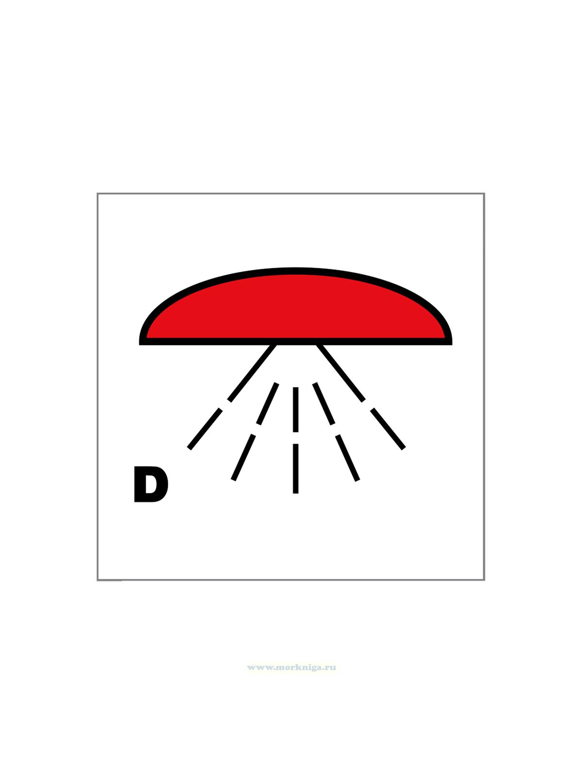 Наклейка "Space protected by drenching system" указывает на зону, где установлен автоматический дренажный (поливной) огнетушащий механизм, предназначенный для быстрого поглощения и подавления огня. Она информирует персонал о наличии надёжного способа тушения, позволяя мгновенно активировать систему и защищать оборудование, материалы или людей от возгорания.