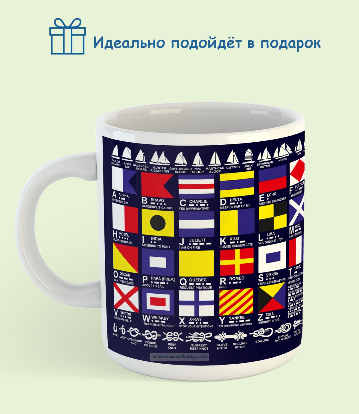 Кружка, из высококачественной керамики с ярким принтом международных морских сигнальных флагов, подходит для горячих и холодных напитков, удобна для ежедневного использования дома или в офисе. Оригинальный дизайн в морском стиле делает кружку отличным подарком для моряков, яхтсменов и любителей морской тематики.