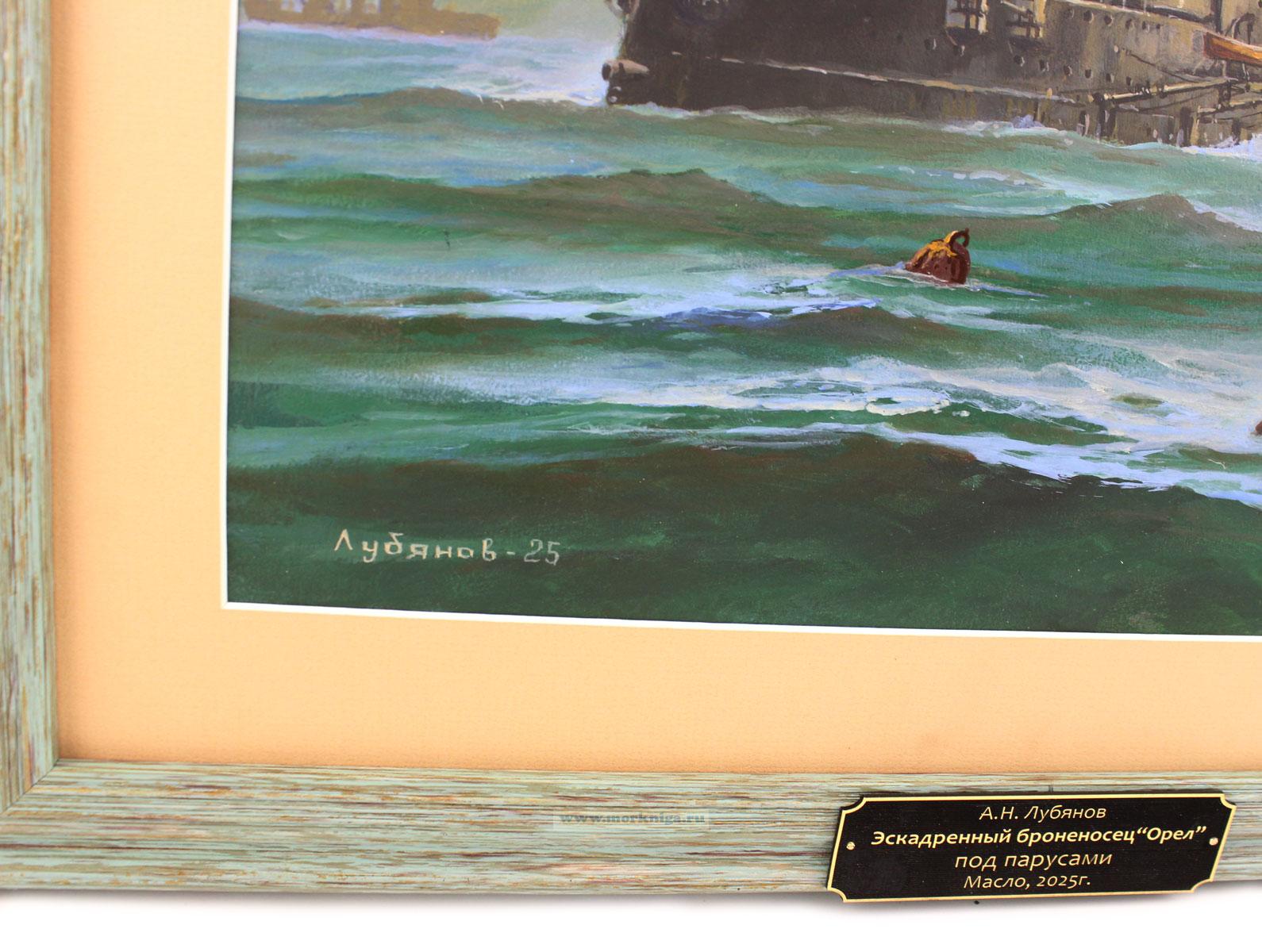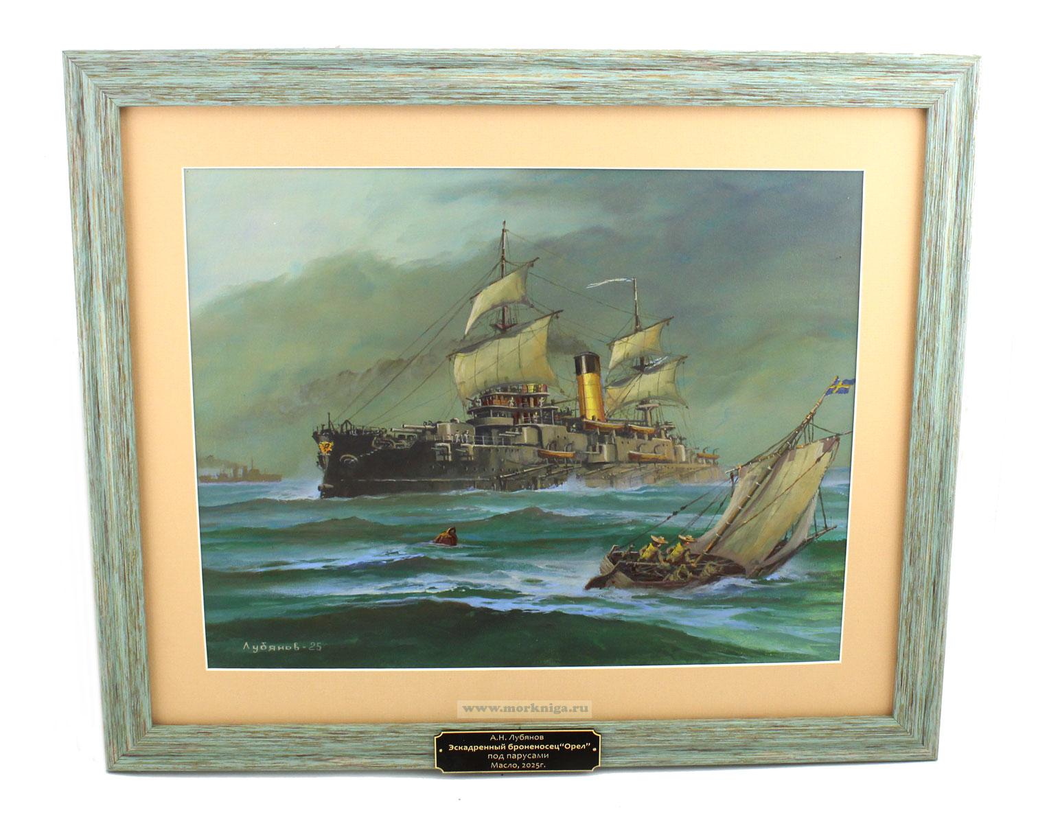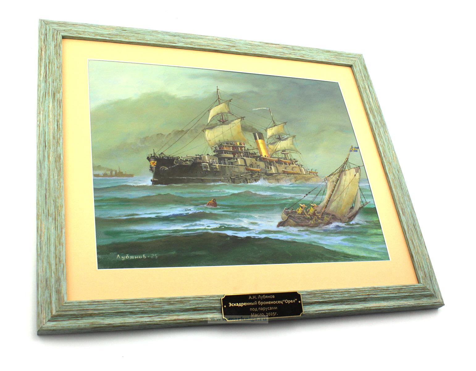 Картина "Эскадренный броненосец „Орел“ под парусами" - авторская работа художника А.Н. Лубянова, выполненная маслом в 2025 году.