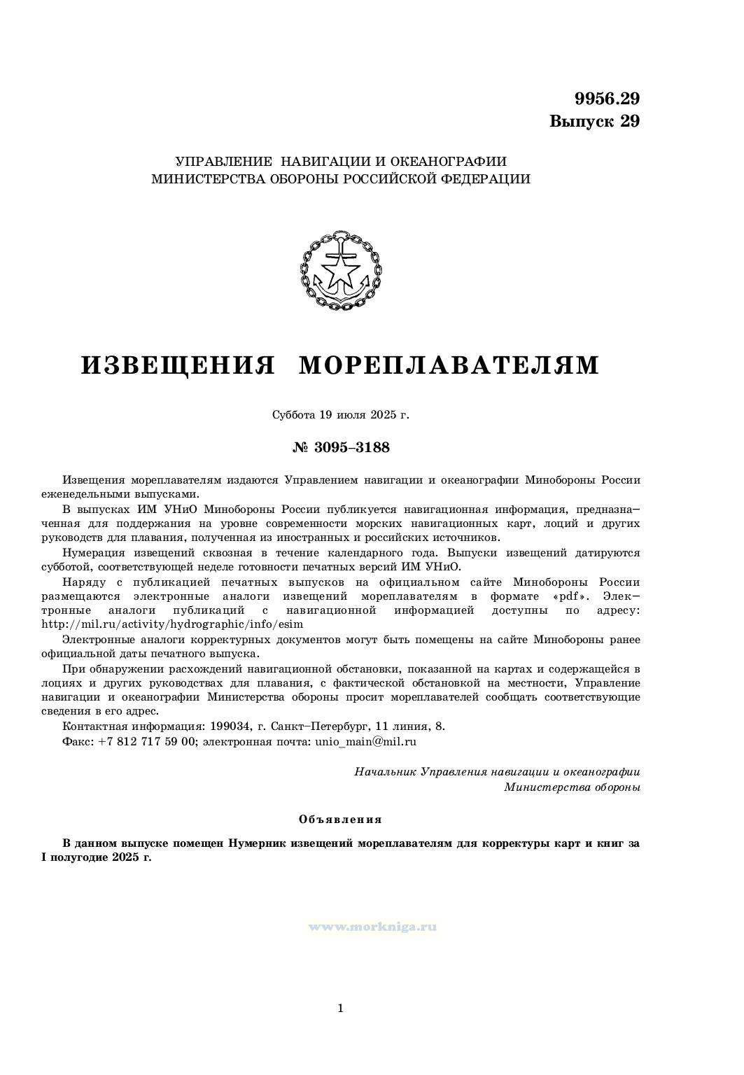 Извещения мореплавателям. Выпуск 29. № 3095-3188 (от 19 июля 2025 г.) Адм. 9956.29
