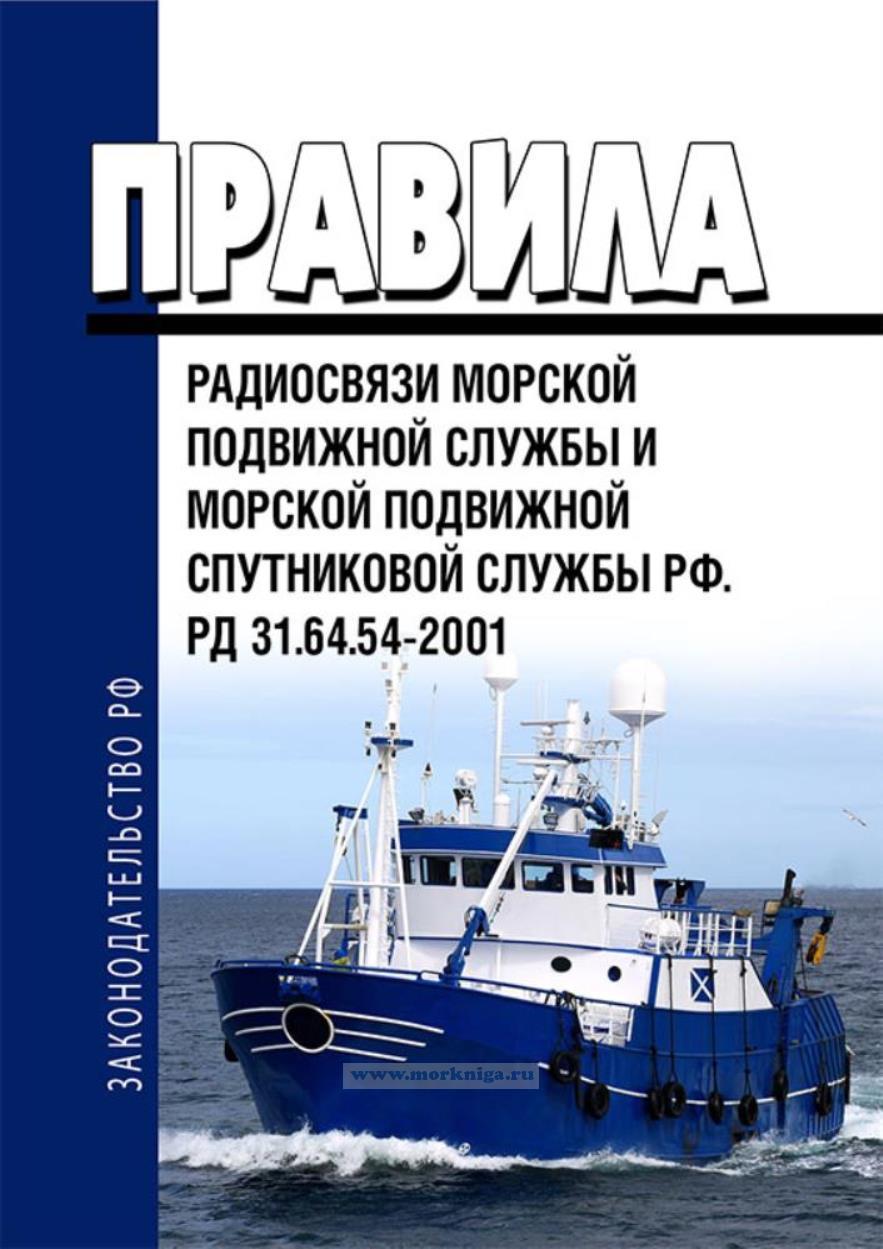 Правила радиосвязи морской подвижной службы и морской подвижной спутниковой службы РФ. РД 31.64.54-2001 с Дополнениями (РД 31.06.09-2003, РД 31.06.10-2003) входят в Перечень документов, которые должны находиться на борту судов рыбной промышленности РФ.