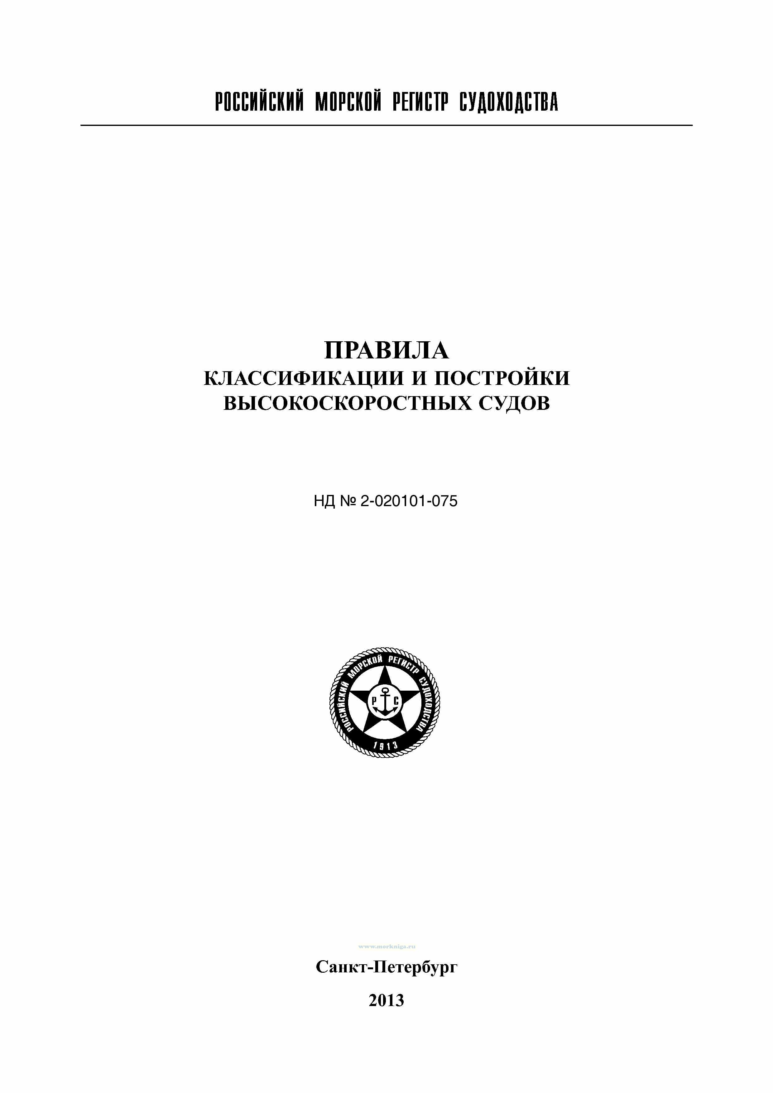 Правила классификации и постройки высокоскоростных судов Российского морского регистра судоходства утверждены в соответствии с действующим положением и...