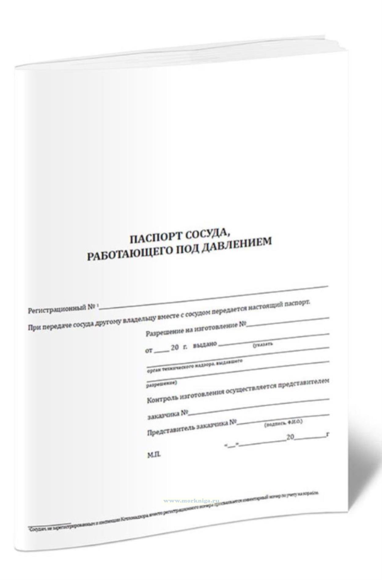 Форма паспорта сосуда, работающего под давлением соответствует Приложению 1 к [url00-00005751]Руководству по эксплуатации и техническому освидетельствованию баллонов,...