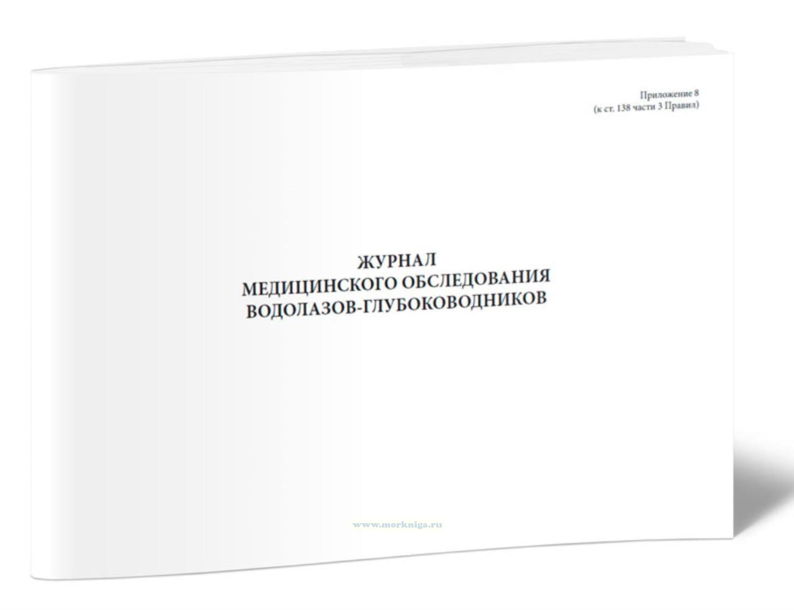 Форма журнала медицинского обследования водолазов-глубоководников соответствует Приложению 8 к [url1225]ПВС ВМФ Правилам водолазной службы военно морского флота...