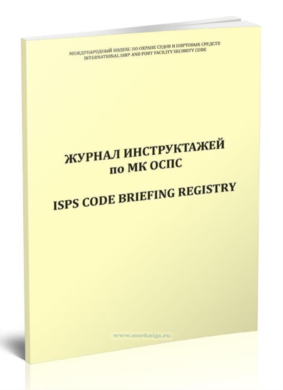 Записи в журнале ведутся на русском языке с переводом на английский язык. Журнал инструктажей по МК ОСПС/isps code briefing registry входит в [url816865]Судовой комплект журналов...