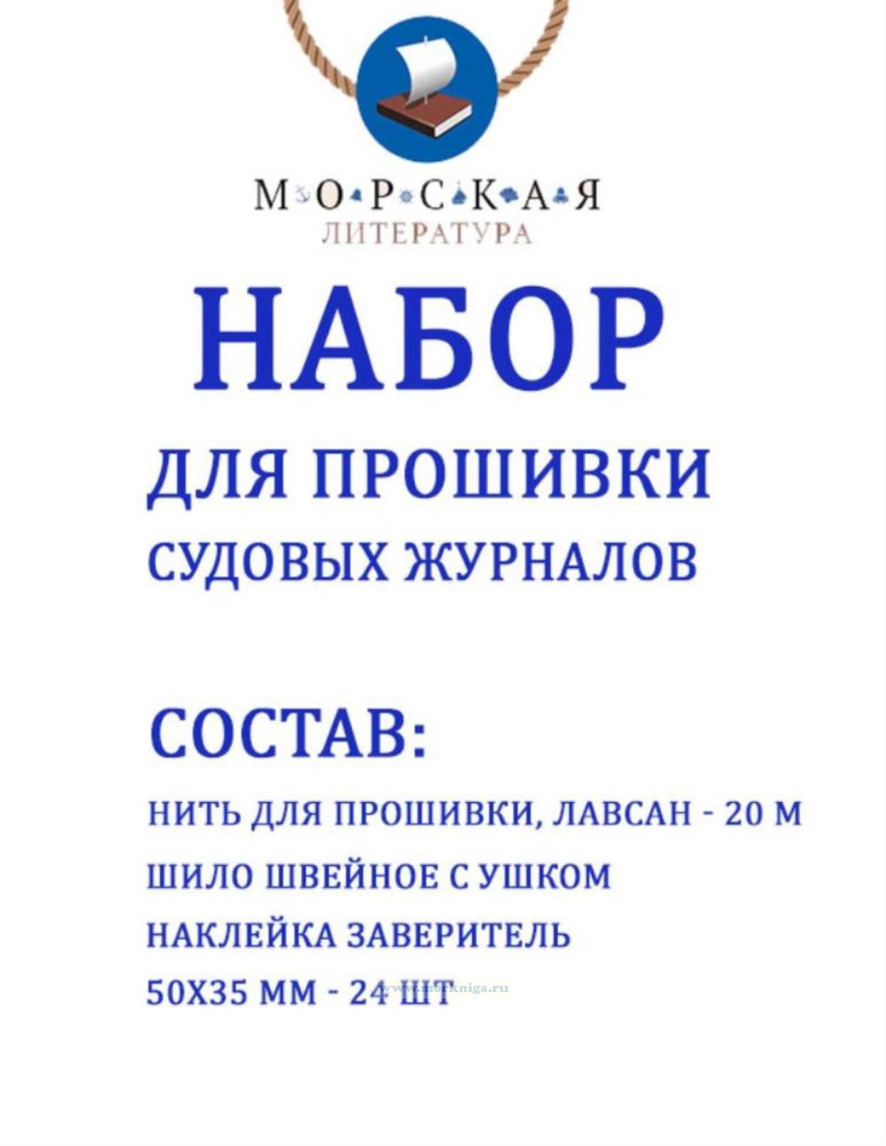 Набор для прошивки судовых журналов содержит: - прочная синтетическая нить для прошивки белого цвета - 20 м. - шило с ушком для протягивания нити. - наклейка...