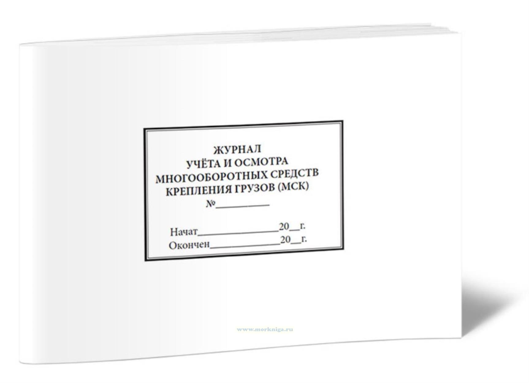 Журнал учета и осмотра многооборотных средств крепления грузов (МСК) имеет формат 210х297мм и содержит 60 стр. Форма журнала соответствует Приложению А [url00-01014682]РД...