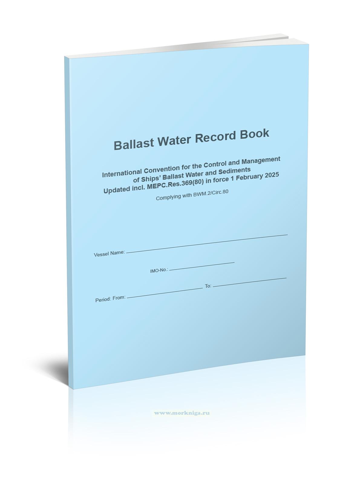 Журнал на английском языке the ballast water record book is made with regards to with the international convention for the control and management of ships’ ballast water and sediments (updated incl. [url00-01104959]mepc.res.369(80)[/url00-01104959] in force 1 february...