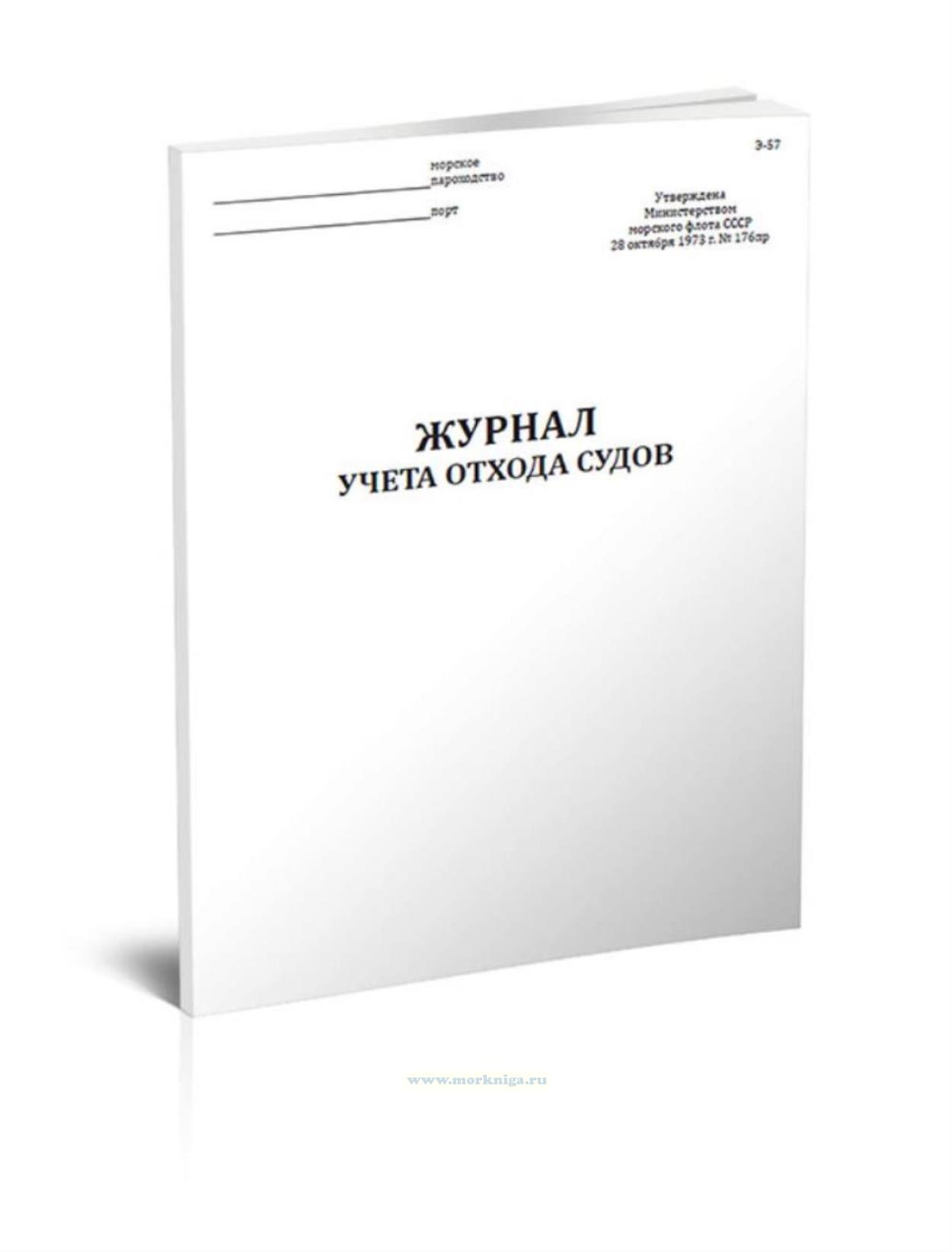 Форма журнала отхода судов (Э-57) утверждена Министерством морского флота СССР 28 октября 1973 г. № 176пр Журнал отхода судов по форме Э-57 имеет графы: 1. Порядковый №...