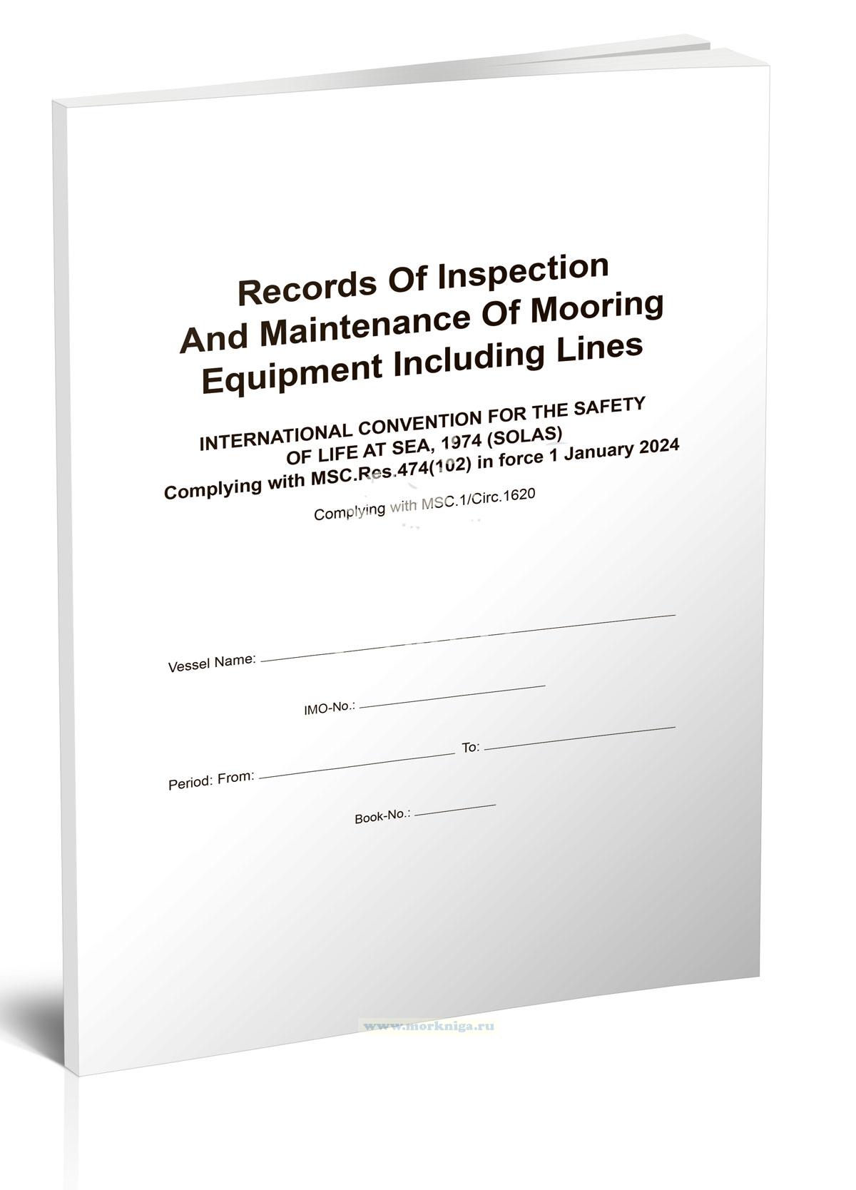 Журнал на английском языке records of inspection and maintenance of mooring equipment including lines is compliant with msc.res.474(102) and msc.1/circ.1620 the records of inspection and maintenance of mooring equipment, inspection and replacement of mooring lines, since...