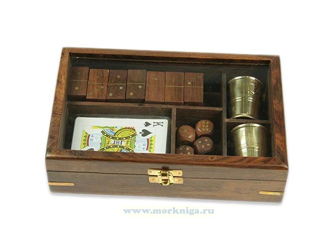 Шкатулка с четырьмя играми: карты, кости, домино и шахматы (фигурки с креплением дают возможность играть, например, в поездке), поможет вам получить море...