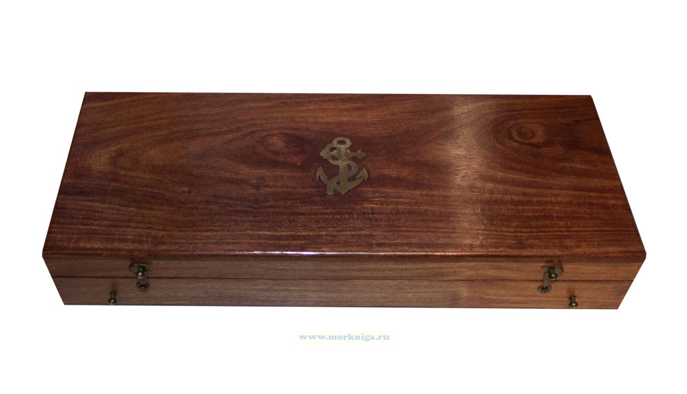Шкатулка из красного дерева с якорем на крышке и зеленым бархатом внутри наполнит ваш интерьер морским уютом. Размеры: 31 х 15 х 5см Материал: красное дерево