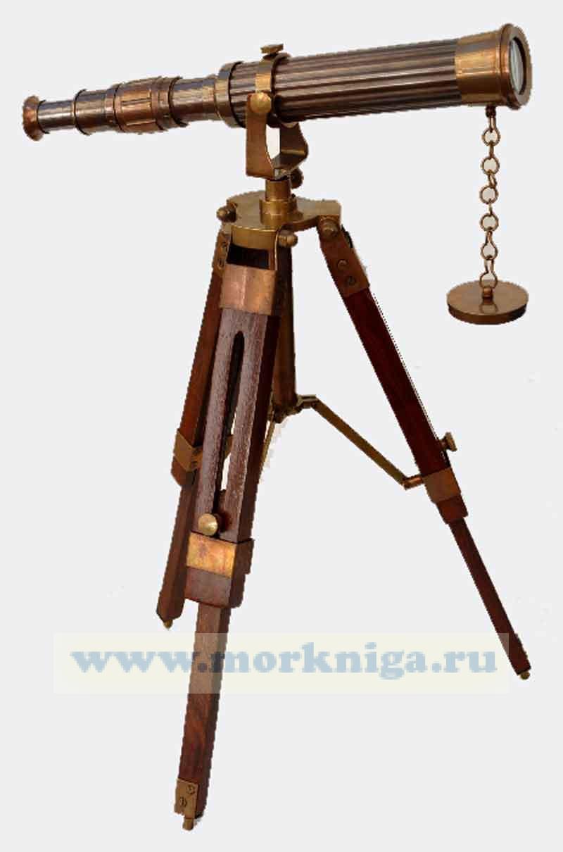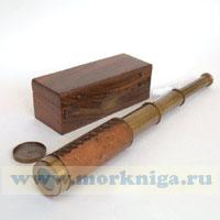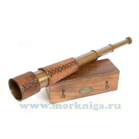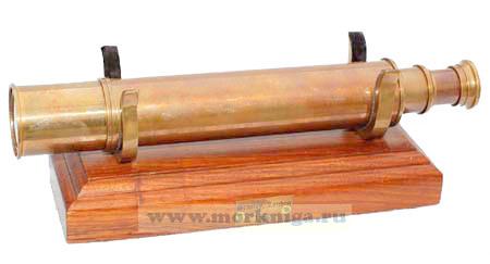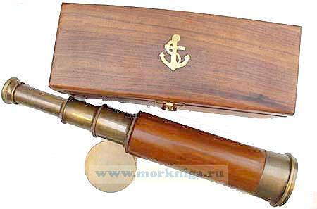 Труба зрительная телескопическая четырехколенная. Примерно 6-ти кратное увеличение. Материалы: бронза, красное дерево Габариты: Длина - 25 см Ширина - 9 см Высота - 8...