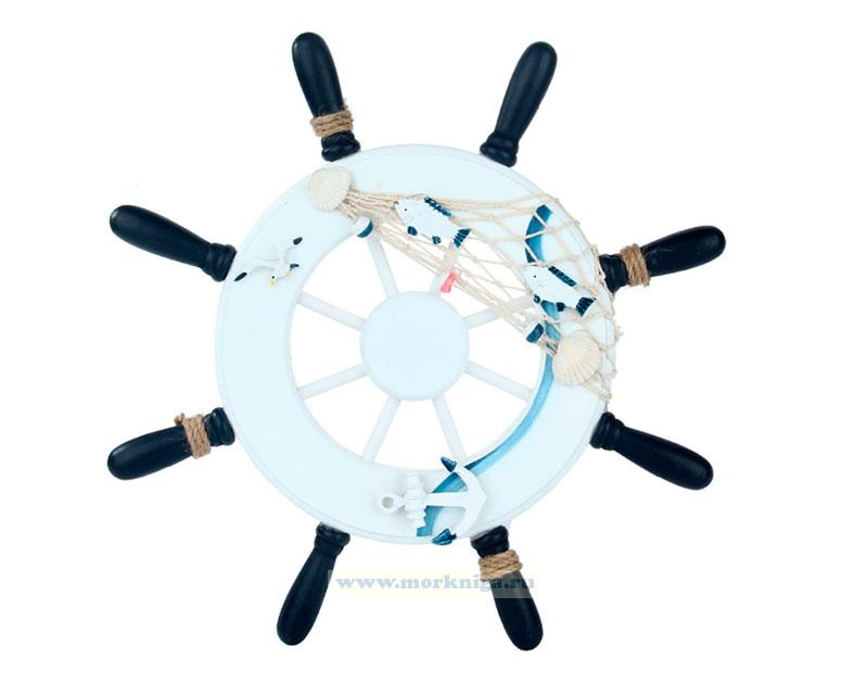 Сувенир интерьерный "Штурвал с ракушками, сетью и зеркальными вставками" идеально подойдет для создания морской атмосферы в помещении, а зеркальные вставки...