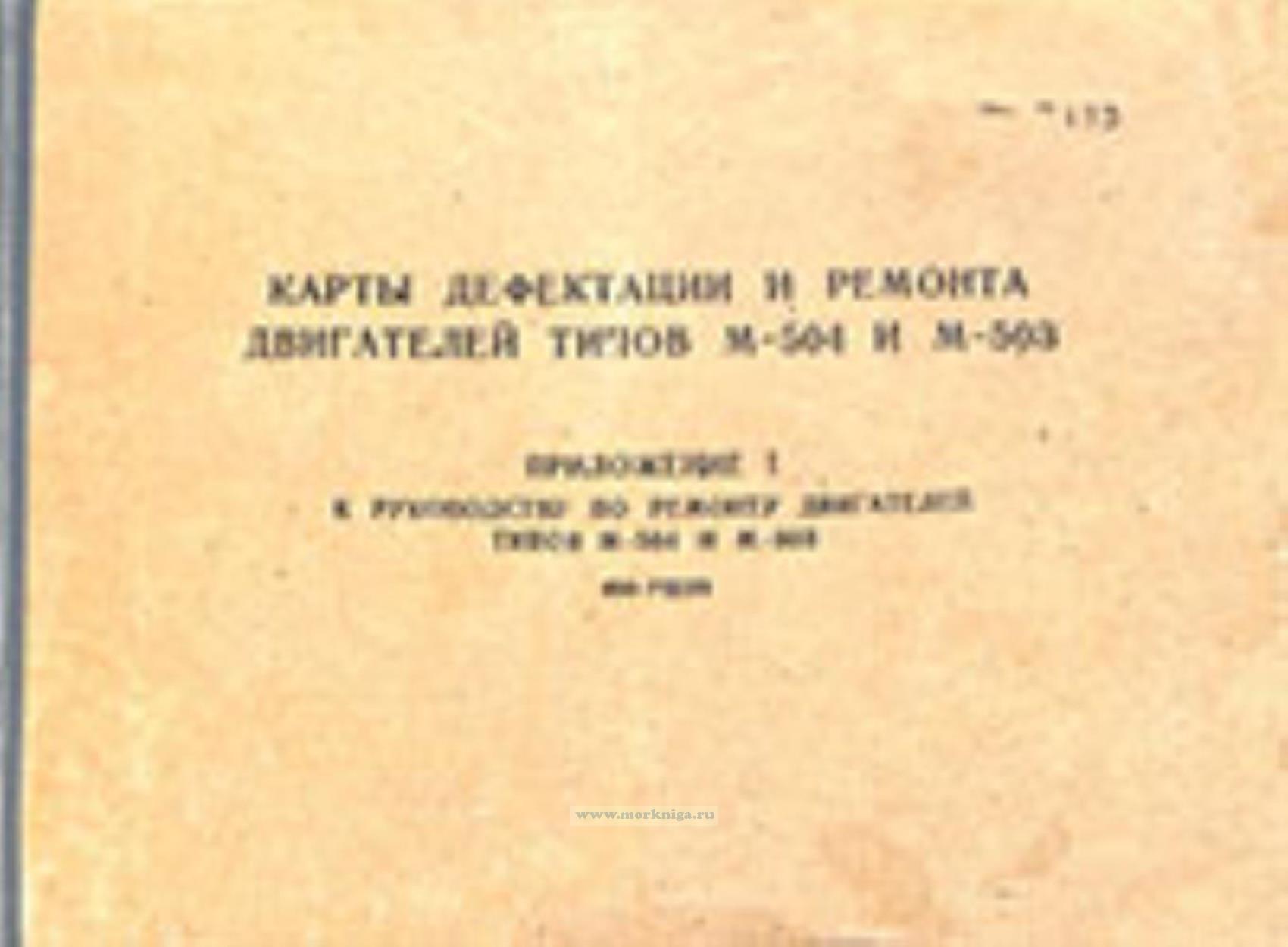 Настоящее Приложение Карты дефектации и ремонта двигателей типов М-504 и М-503 является основным руководящим документом для проведения дефектации и ремонта узлов и...