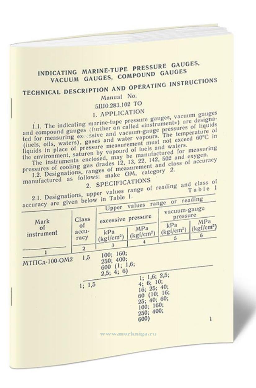Брошюра на английском языке the indicating marine-tupe pressure gauges, vacuum gauges and compound gauges are designated for measuring excessive and vacuum-gauge pressures of liquids (iuels, oils, waters), gases and water vapours. the temperature of liquids in place of...