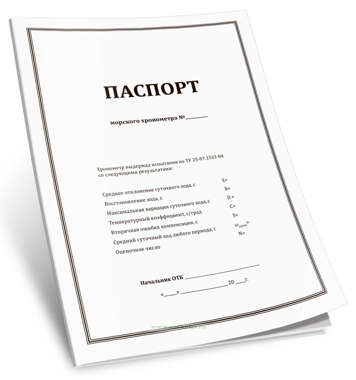 Паспорт морского хронометра содержит технические характеристики и результаты испытаний изделия согласно требованиям ТУ 25-07.1533-84. В документе отражены показатели...