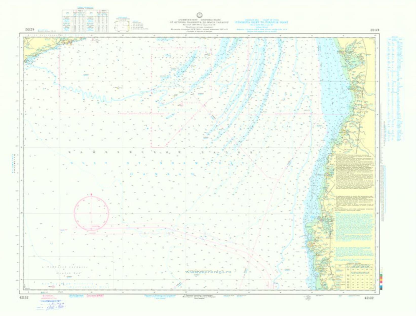 Индийская система координат Глубины и высоты в метрах На март 2019 года карта содержит корректуру согласно [url00-01026019]Извещению мореплавателям, Выпуск 10 №1132 , ...