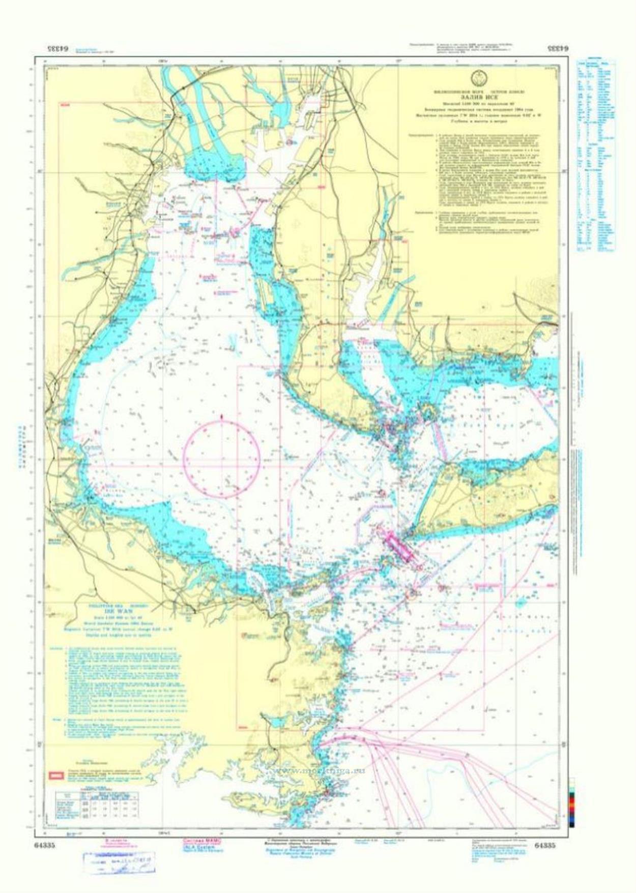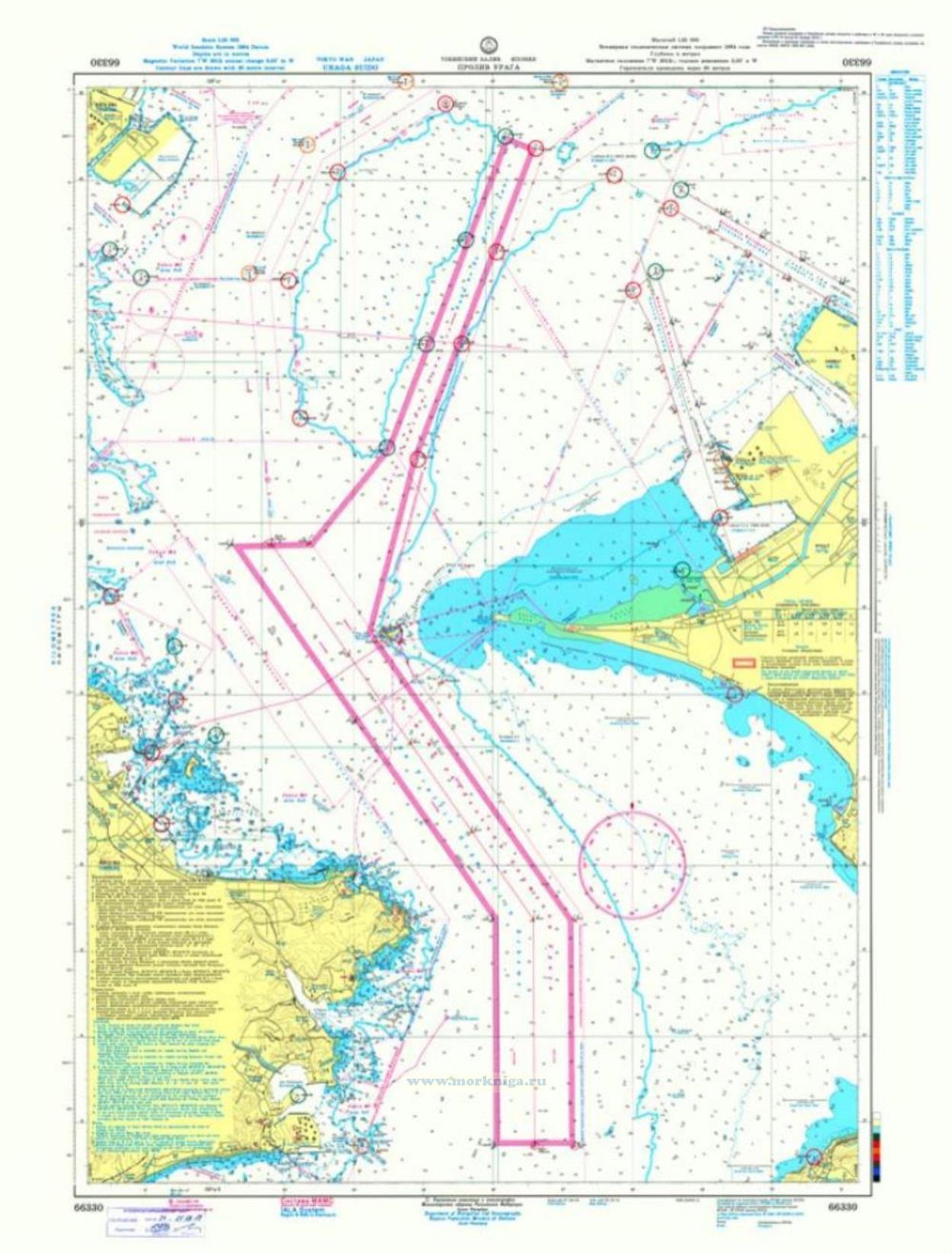 На апрель 2019 года в карту внесена корректура согласно [url00-01027082]Извещению мореплавателям. Выпуск 16. № 1954 (от 20 апреля 2019 г.) Адм. 9956.16 [/url00-01027082] Нанести: 1....