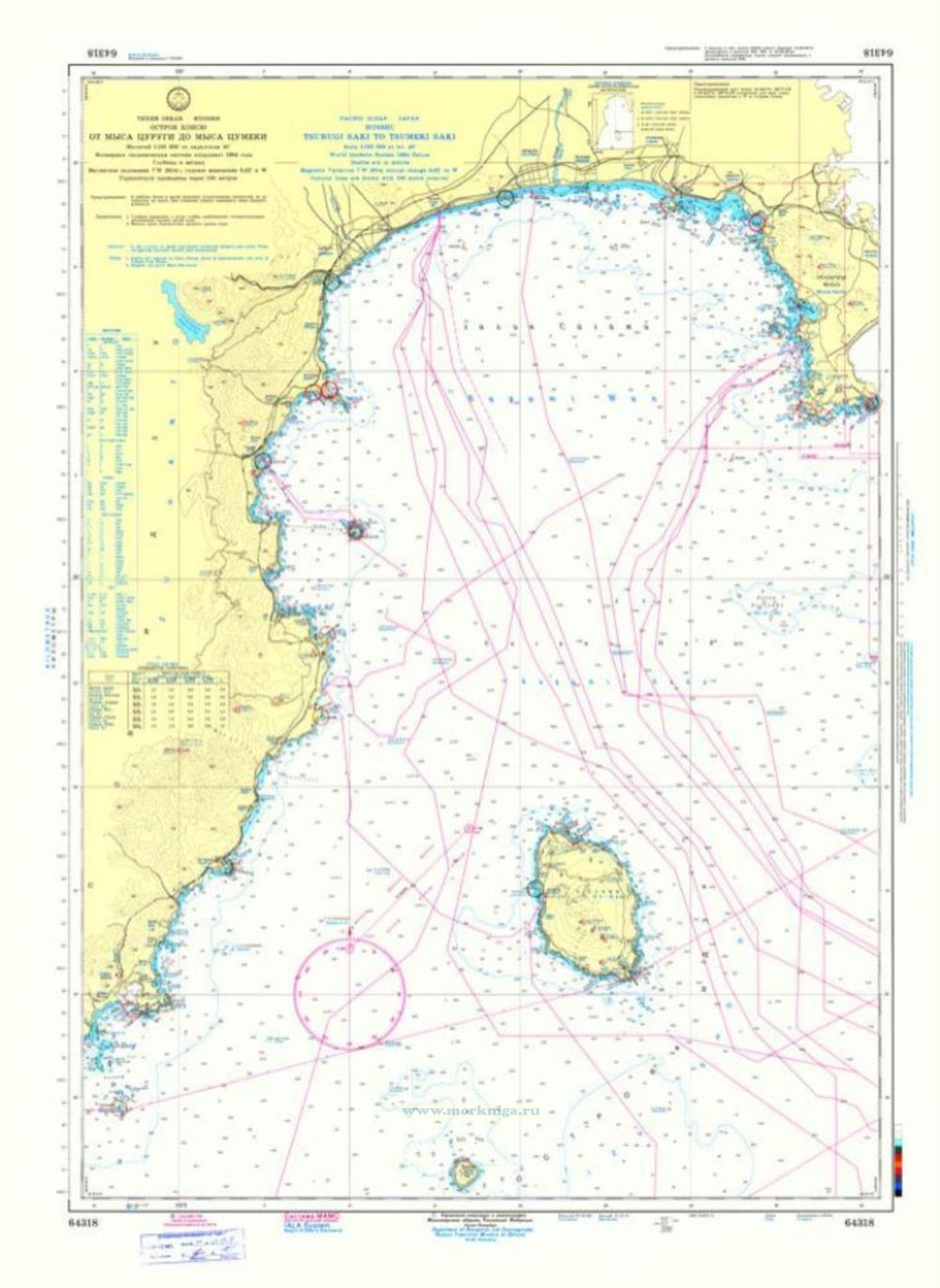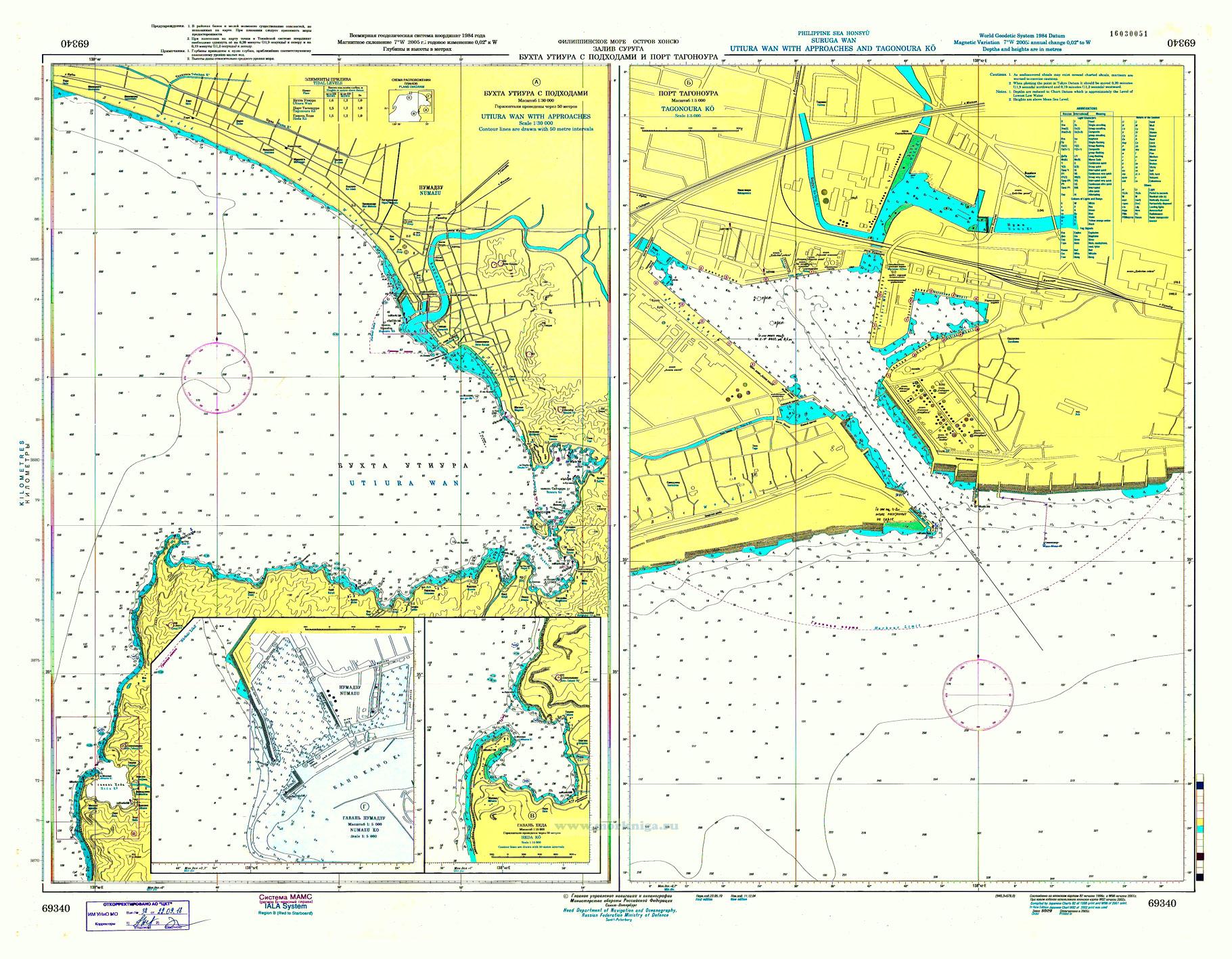 На апрель 2019 года карта содержит корректуру согласно [url00-01027083]Извещению мореплавателям. Выпуск 17 № 2078 (от 27 апреля 2019 г.), Адм. 9956.17[/url00-01027083] Исправить: 1....