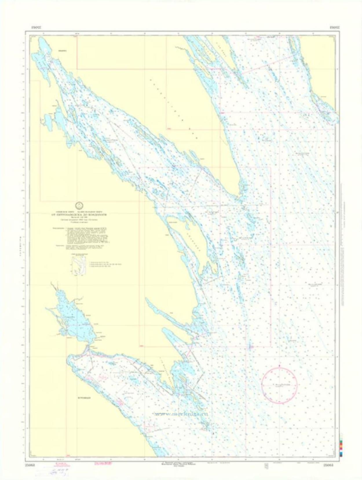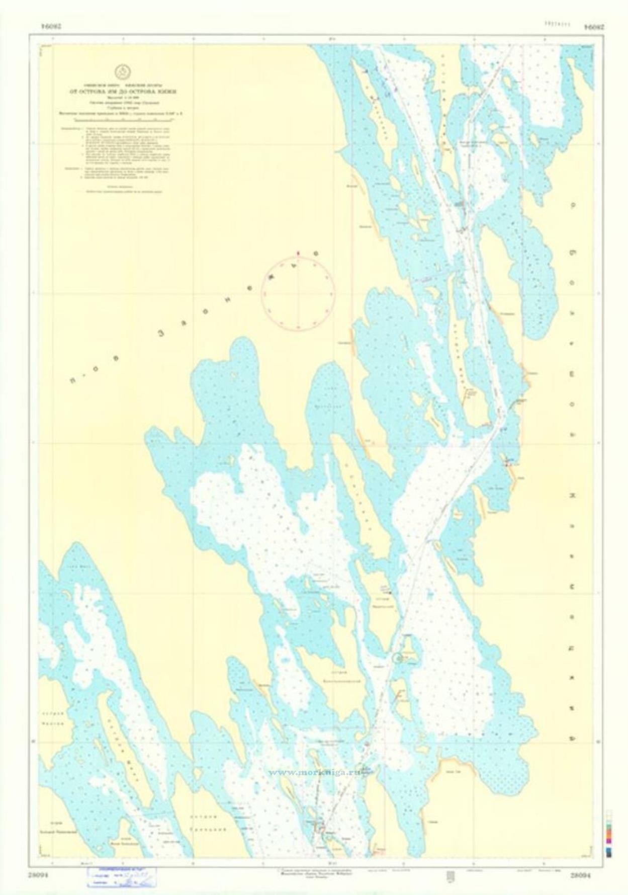 Карта двусторонняя: - с одной стороны - 28094 От острова Ям до острова Кижи (Масштаб 1:10 000) - с другой стороны - Подходы к острову Кижи с юга (Масштаб 1:5000) Система...