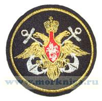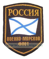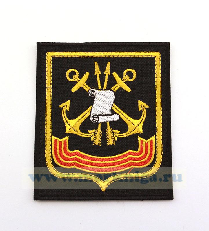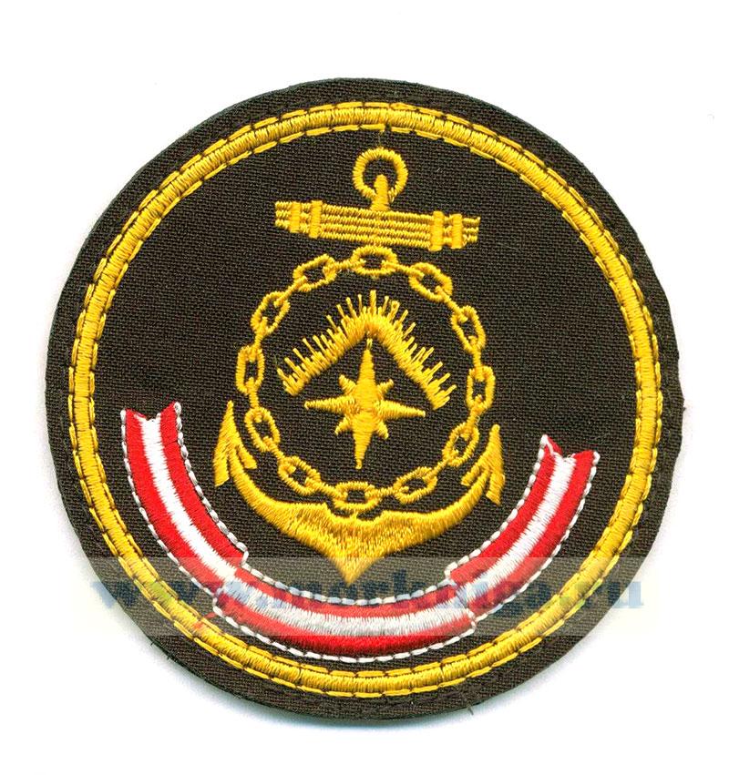Нашивка вышитая нарукавная "Государственный центральный морской полигон ВМФ" прямоугольной формы, фон черный, кант желтый. Размер: длина 10 см, ширина 8,5 см.