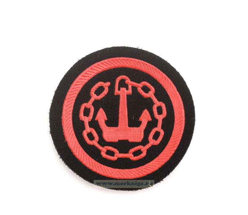 Нарукавный знак (шеврон, нашивка) Боцманская команда ВМФ СССР для матросов Диаметр знака вместе с окантовкой - 60 мм Ширина окантовки - 5 мм Длина знака - 70 мм