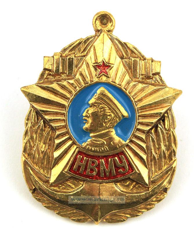 Описание знака «Нахимовское военно-морское училище»: Слегка вытянутый по вертикали лавровый венок, на который наложен [url00-01021627]адмиралтейский якорь[/url00-01021627]. На...