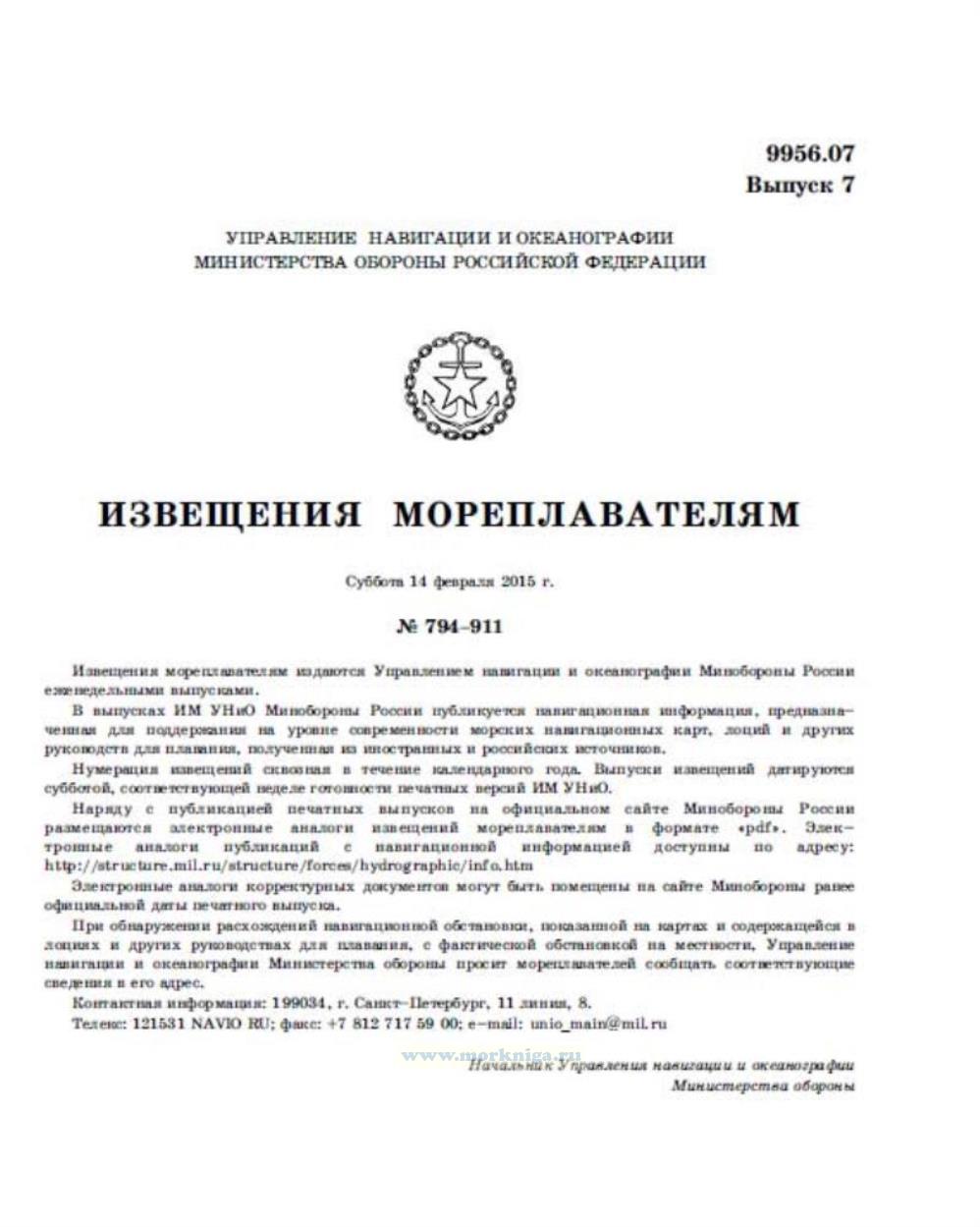Полный перечень извещений мореплавателям за 2015 год находиться в [url00-01007627]Нумернике за 2015 год[/url00-01007627] Извещения мореплавателям издаются Управлением навигации и...