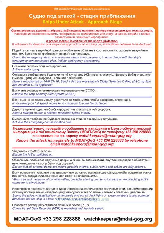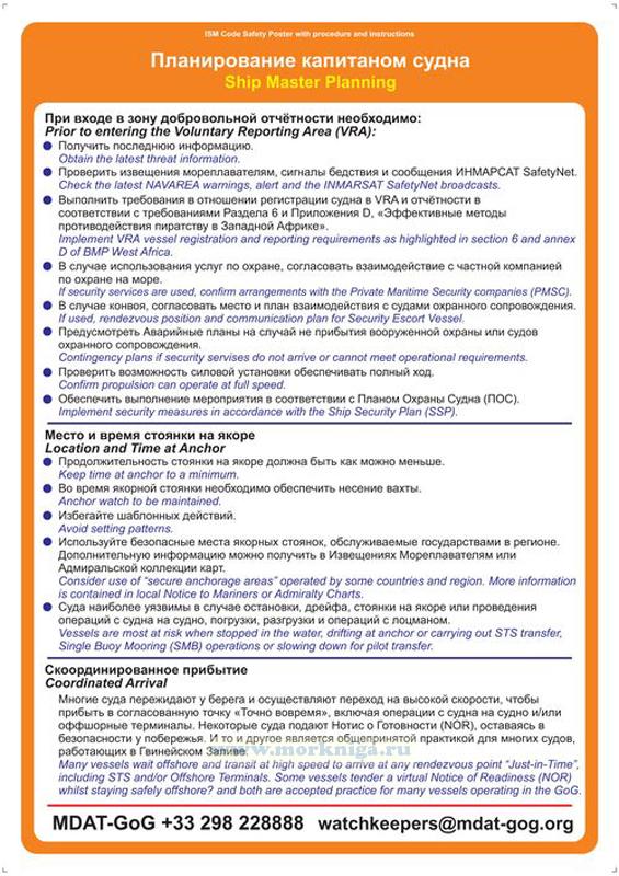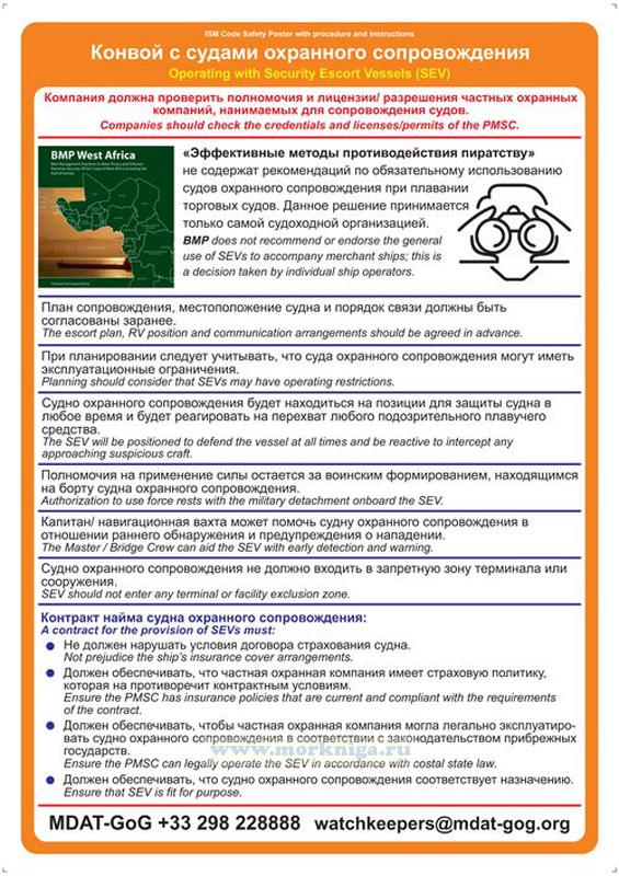Плакат на русском и английском языках Плакат содержит рекомендации по борьбе с пиратством, а также по содержанию контракта найма охранного сопровождения судна. ...