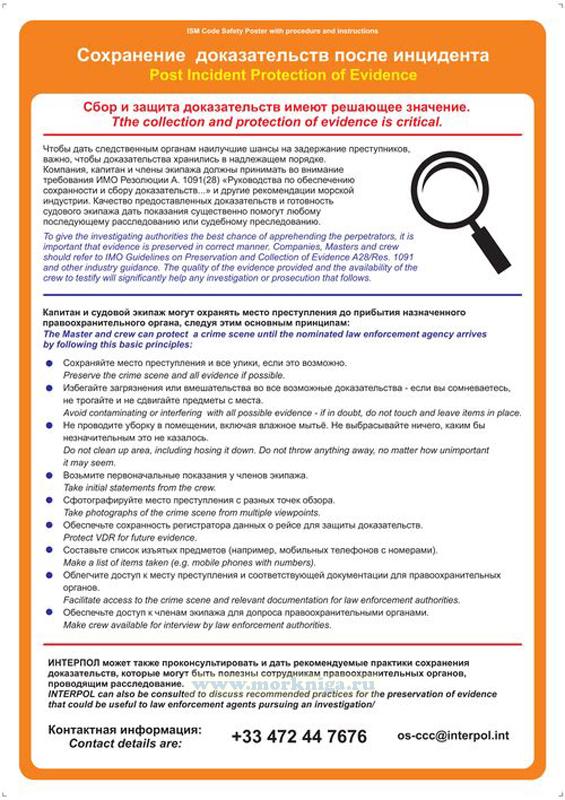Плакат на русском и английском языках Плакат содержит информацию о необходимых действиях после инцидента, которые помогут сохранить доказательства. Материал: ...