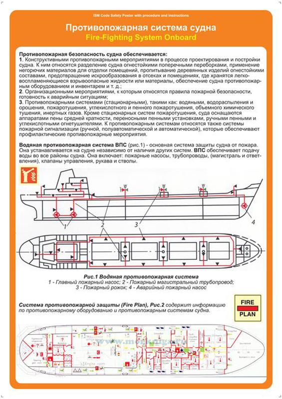 Плакат на русском и английском языках Плакат содержит информацию о противопожарной системе судна. Плакат напечатан на самоклеящемся виниле (80 микрон),...