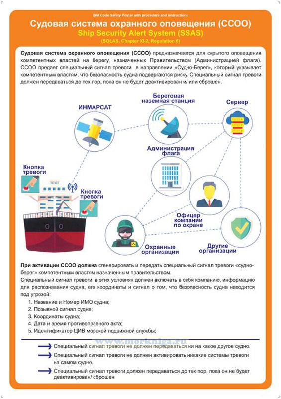 Плакат на русском и английском языках Плакат содержит информацию о судовых системах охранного оповещения (ССОО). Плакат напечатан на самоклеящемся виниле (80...