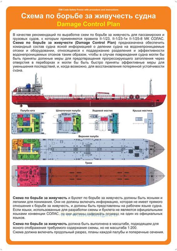 Плакат на русском и английском языках Плакат содержит информацию о порядке борьбы за живучесть судна. Плакат напечатан на самоклеящемся виниле (80 микрон),...