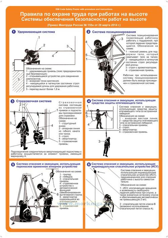 Плакат содержит информацию о системах обеспечения безопасности работ на высоте. Плакат напечатан на самоклеящемся виниле (80 микрон), приклеивается на гладкую,...