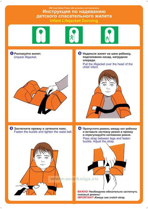 Плакат на русском и английском языках Плакат содержит инструкции по надеванию детского спасательного жилета. Плакат напечатан на самоклеящемся виниле (80...