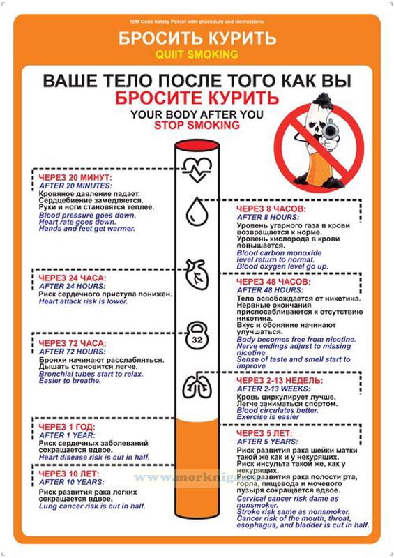 Плакат на русском и английском языке Плакат информирует о том, что будет происходить с организмом человека после того, как он бросит курить, а также мотивирует не...