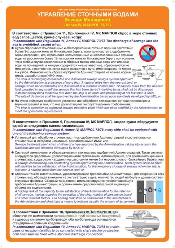 Плакат на русском и английском языке На плакате перечислены исключительные случаи, при которых сброс в море сточных вод разрешен, а также рассказывается о том,...