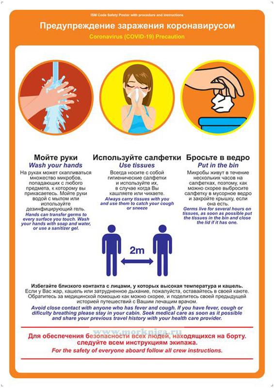 Плакат на русском и английском языках Плакат содержит рекомендации по предупреждению заражения коронавирусом. Плакат напечатан на самоклеящемся виниле (80...