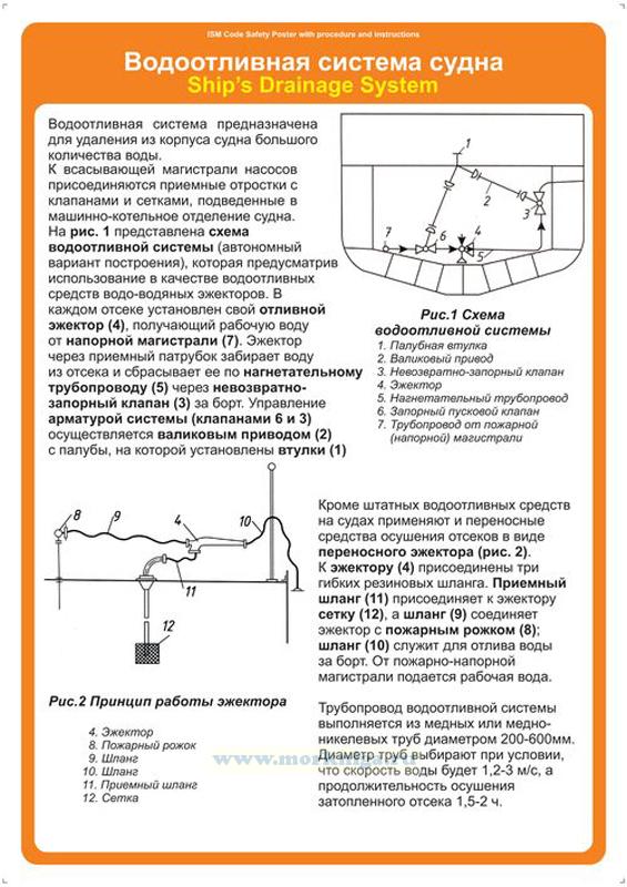 Плакат на русском и английском языках Плакат содержит информацию о водоотливной системе судна. Плакат напечатан на самоклеящемся виниле (80 микрон),...