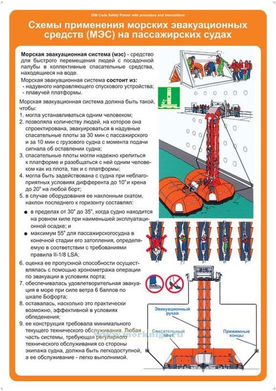 Плакат содержит информацию о схемах применения морских эвакуационных средств (МЭС) на пассажирских судах. Плакат напечатан на самоклеящемся виниле (80 микрон),...