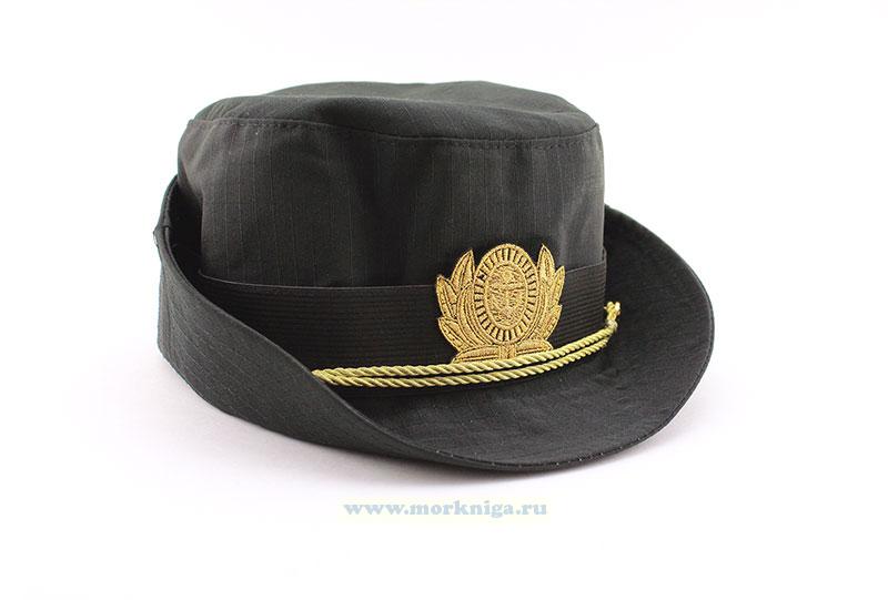 Шляпка черная женская укомплектована вышитой кокардой мичмана ВМФ золотистого цвета на резинке и филигранью, прикрепленной на две металлические пуговицы.....