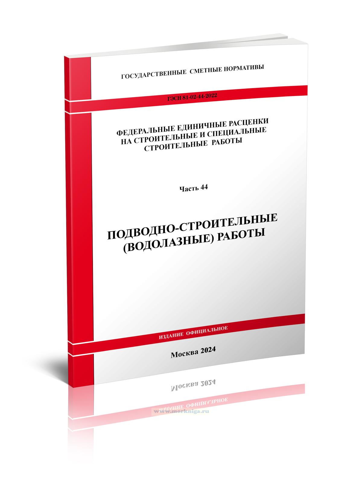 Документ продается с актуализацией на дату продажи! "ГЭСН 81-02-44-2022. Сметные нормы на строительные работы. Сборник 44. Подводно-строительные (водолазные) работы"...