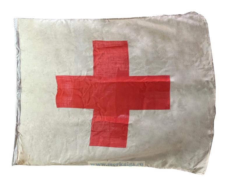 Флаг оригинальный (не новодел). Имеются небольшие заплатки, дырочки и загрязнения. Дым - белый треугольный флаг с темно-синей горизонтальной полосой. Размер: ...