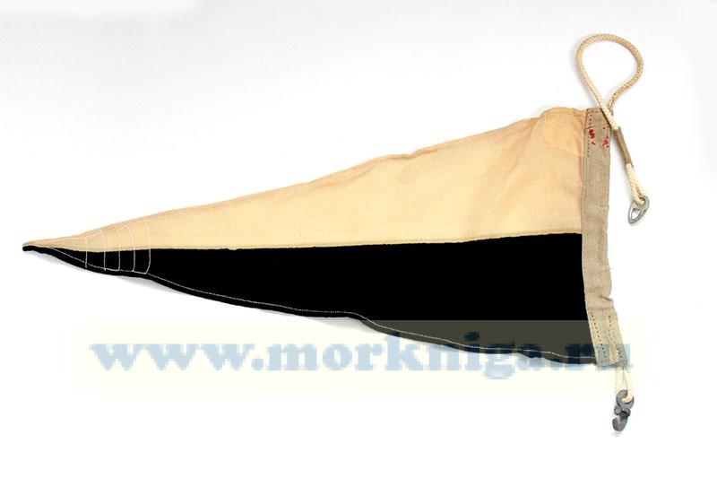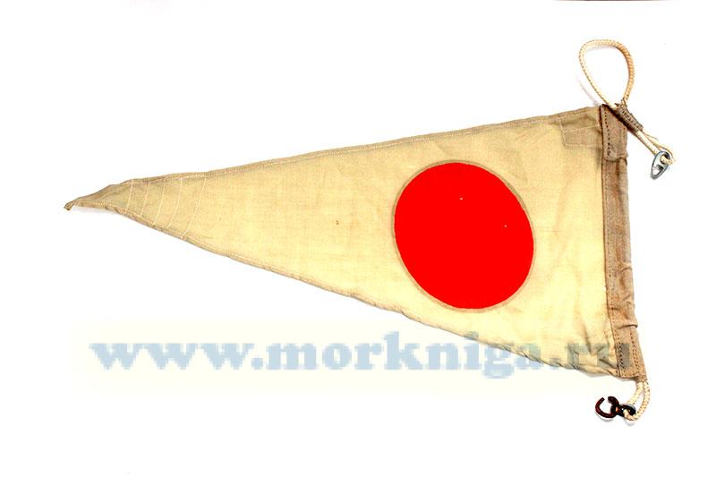 Имеются заплатки и небольшие дырочки Флаг оригинальный (не новодел) ответный - красный трапециевидный вымпел с белым кругом. Размер: 82 х 246 см Длина растяжки: 123...